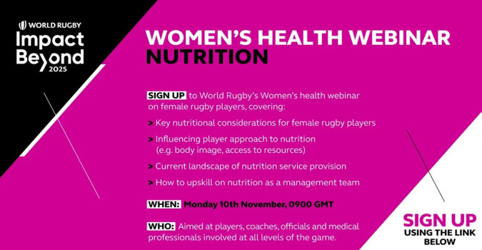 Czwarty z webinariów World Rugby poświęconych zdrowiu kobiet, Impact Beyond 2025, będzie poświęcony odżywianiu zawodniczek rugby. Sesja ta nawiązuje do ogromnego sukcesu Pucharu Świata w Rugby Kobiet 2025 i wzrostu zainteresowania tym sportem. Jest ona częścią programu World Rugby Impact Beyond 2025, który obejmuje cały turniej. Jest to część szerszego cyklu webinariów, który ma na celu zwiększenie świadomości kobiet i dziewcząt uprawiających ten sport na temat problemów zdrowotnych, które często nie są tak otwarcie omawiane, jak mogłyby być.