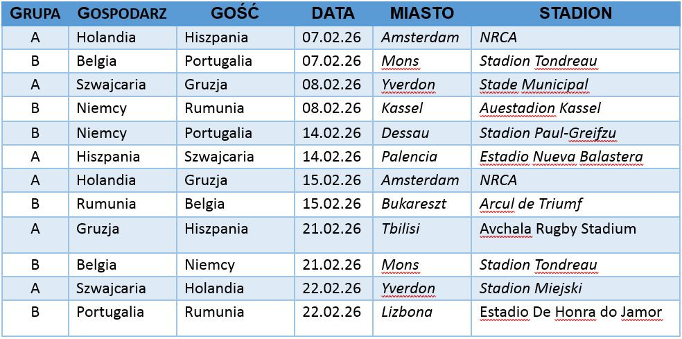 • Grupa A: 1. Gruzja, 4. Hiszpania, 5. Holandia, 8. Szwajcaria.