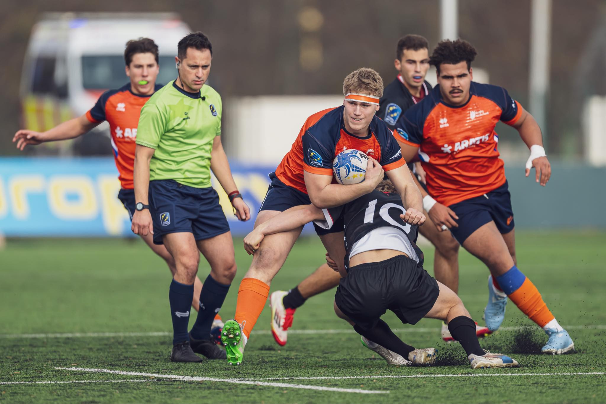 Drugi rok z rzędu miałem przyjemność uczestniczyć w młodzieżowych Mistrzostwach Europy w których rywalizowały najlepsze drużyny w kategoriach U18 oraz U20. Powołanie z Rugby Europe otrzymało 9 sędziów pochodzących z Francji, Irlandii, Gruzji, Hiszpanii, Portugalii, Holandii, Niemiec oraz z Polski, wspierani byli przez szefa sędziów RE - Joela Dume oraz performance review'erów - Yves Brochard oraz Philippe Lenne.