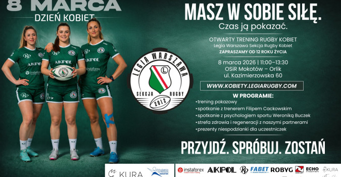 W Dniu Kobiet Legia Rugby Sekcja Kobiet organizuje otwarty trening naborowy dla dziewczyn i kobiet od 12. roku życia. Wydarzenie odbędzie się w niedzielę 08 marca br. w godzinach 11:00-13:30 na boisku Orlik OSiR Mokotów przy ul. Kazimierzowskiej 60 w Warszawie.