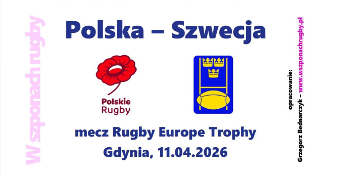 Sobota, 11 kwietnia 2026, godz. 20:00, Narodowy Stadion Rugby w Gdyni oraz Polsat Sport 2 – przed nami mecz ze Szwecją, od zwycięstwa w którym zależeć będzie awans naszej reprezentacji do Rugby Europe Championship. Z tej okazji w „Szponach” tradycyjny przewodnik dla kibiców – dostępny na Google Drive poprzez link: https://bit.ly/4tZxqQX. 16 stron – składy, statystyki, informacje o przeciwnikach, trochę historii.
